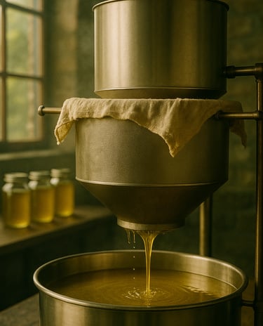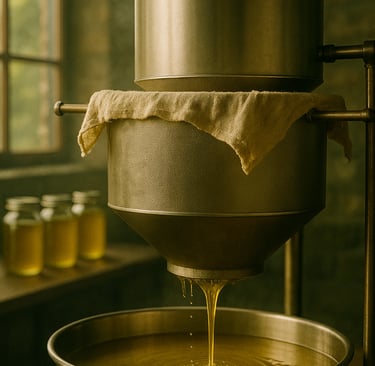 Seeds are slowly pressed in wooden chambers, without generating heat, maintaining natural nutrients.